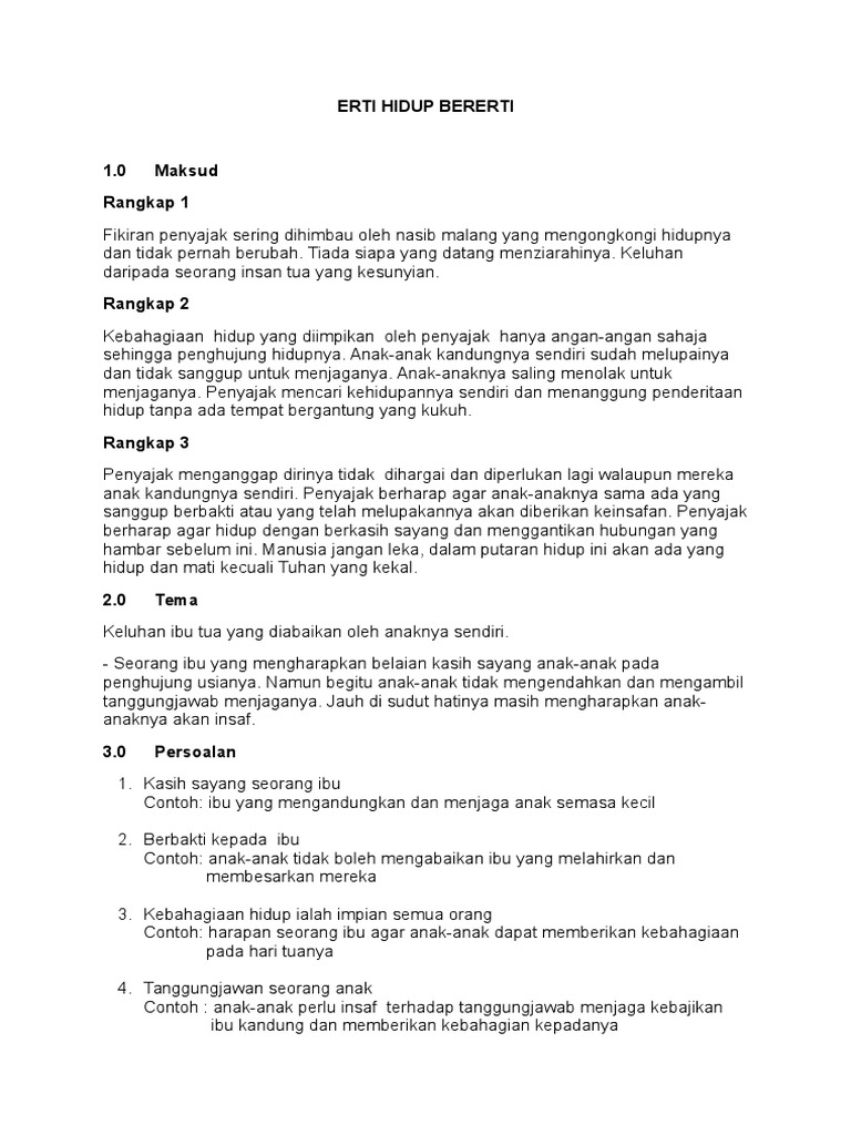 Jika anda menggunakan bahan saya. Sajak Erti Hidup Bererti Tingkatan 5. B Kasih dan sayang orang tua yang tidak dihargai oleh anak-anak.